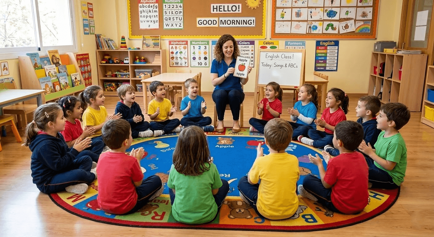 English Time és una activitat extraescolar pensada perquè els infants aprenguin anglès d'una manera natural, progressiva i motivadora. A Educació Infantil, l'objectiu és que es familiaritzin amb la llengua a través del joc, les cançons i les rutines quotidianes, ja que per a molts és el primer contacte amb l'anglès.